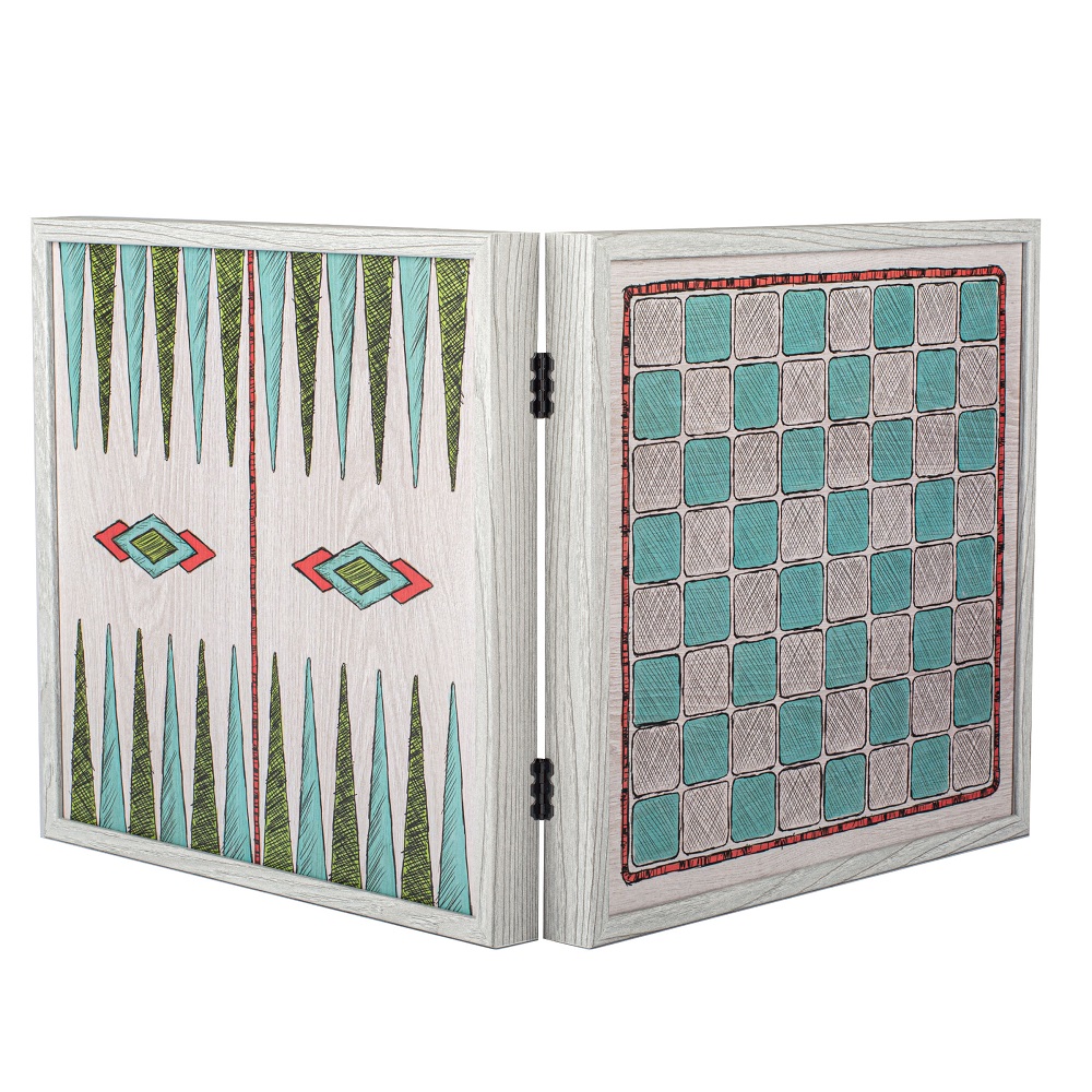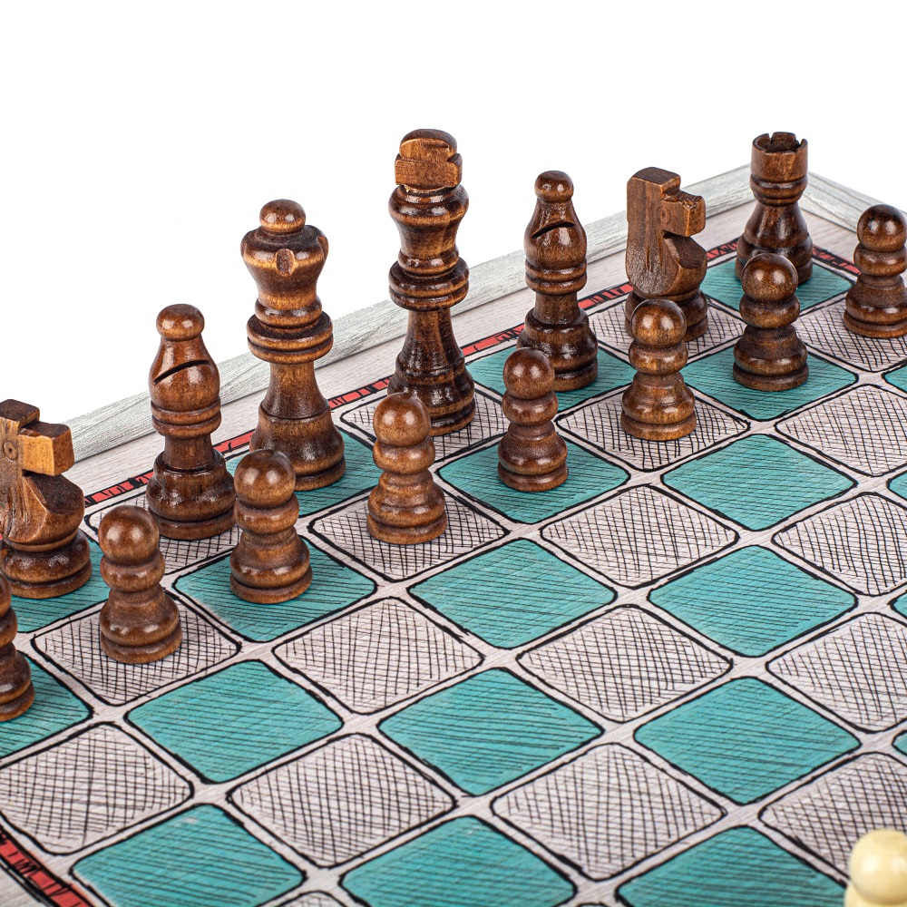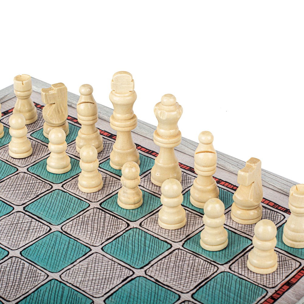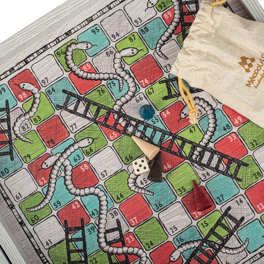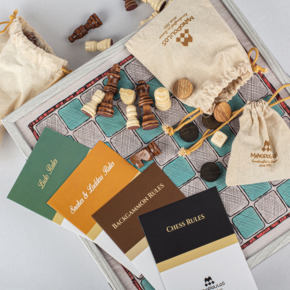 Joc combinat 4 in 1 Manopoulos, desen de mana colorat – Sah / Table / Ludo / Snake