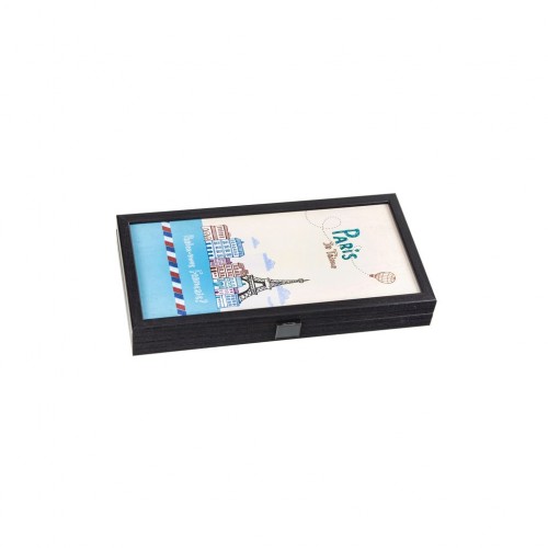 Paris Travel Size Backgammon de la Manopoulos este ideal pentru iubitorii de jocuri de societate care călătoresc frecvent. Acesta combină designul elegant inspirat de Paris cu funcționalitatea unui set de table de dimensiuni compacte, ușor de transportat. Este parte din colecția creativă a brandului și se remarcă prin următoarele caracteristici: